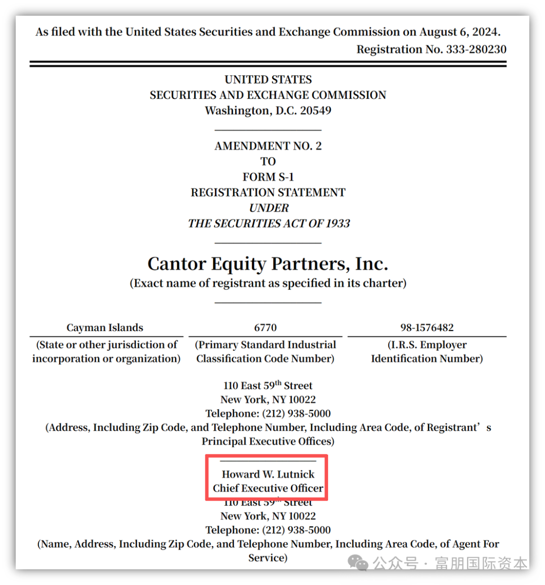 Picture:Shown is the prospectus of NasdaqGM: CEP; Howard Lutnick serves as the SPAC’s CEO. Source: SEC.