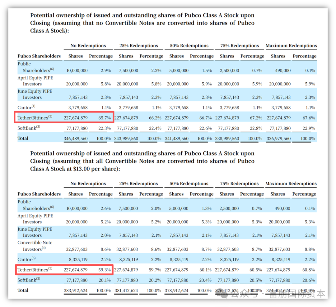 Image: Twenty One Capital’s F-4 filing; with or without conversion of the convertible notes, Tether would be the largest shareholder. Source: SEC.