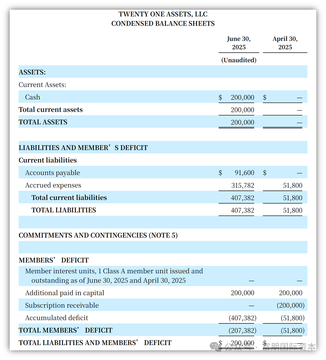 Image:Shown are Twenty One Capital’s pre-listing financials; apart from US$200,000 in registered capital, the company was essentially an empty shell. Source: SEC.
